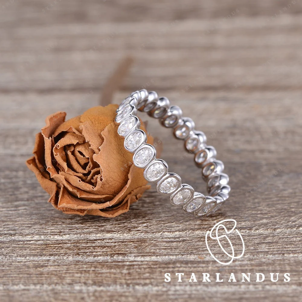 3ct Bezel Set Oval Moissanite Wedding Band Women Wedding Band White Gold Dainty Promise Ring Paved Full Eternity Gift