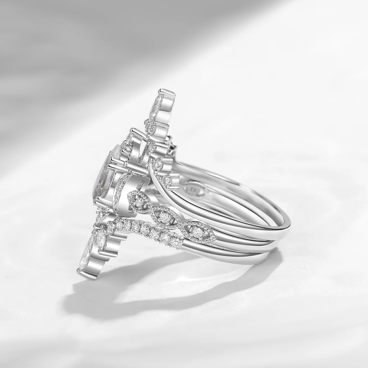 Antique Pear Cut Moonstone Engagement Ring Set 3pcs One Of Crescent Moon Bridal Sets