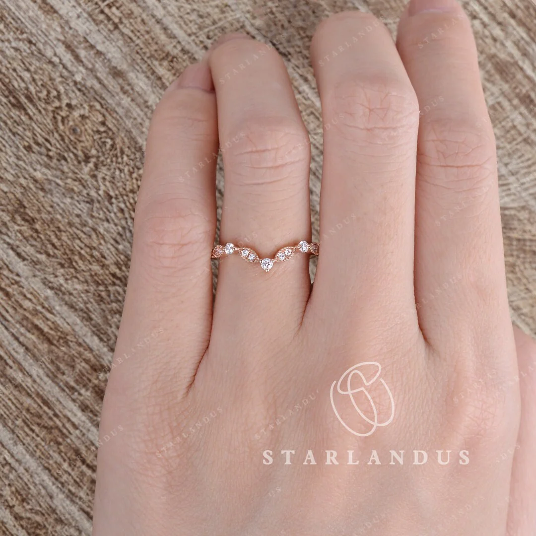Art Deco Wedding Band Women Rose Gold Wedding Ring Retro Antique Chevron Band Matching Antique Wedding Band Stacking Gift Promise For Her
