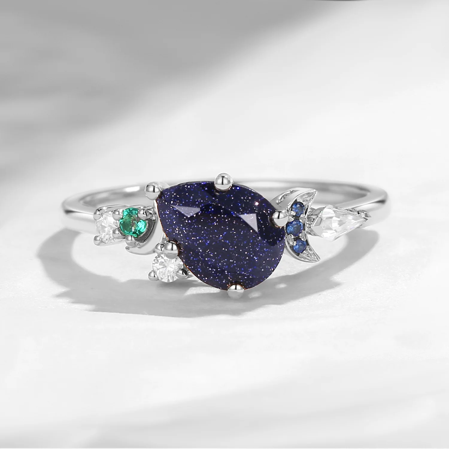 Crescent Moon | Art Deco Pear Shaped Blue Sandstone Cluster Engagement Ring