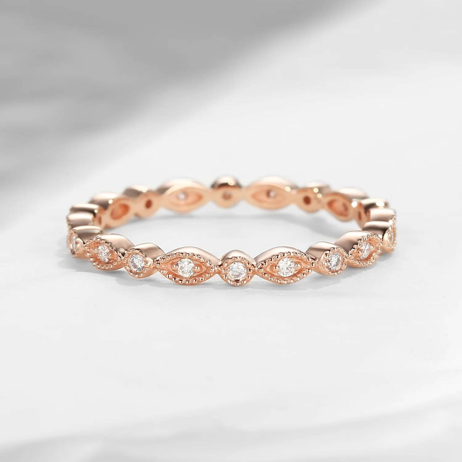 Art Deco Band Moissanite Wedding Band Rose Gold Ring Women Retro Matching Full Eternity For Women Mini Stacking Anniversary Gift Promise