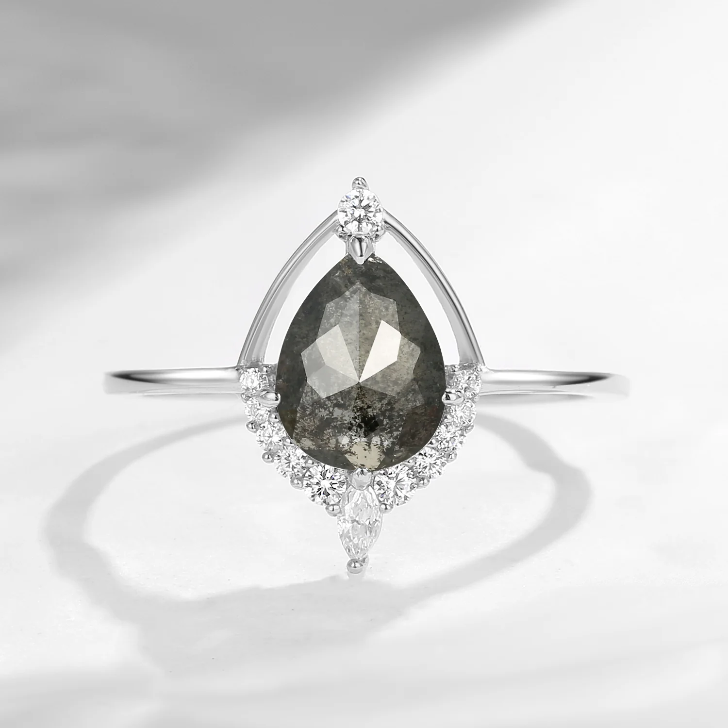 ⟢ Center Stone: Pear Cut Natural Salt And Pepper Diamond, 6*8mm