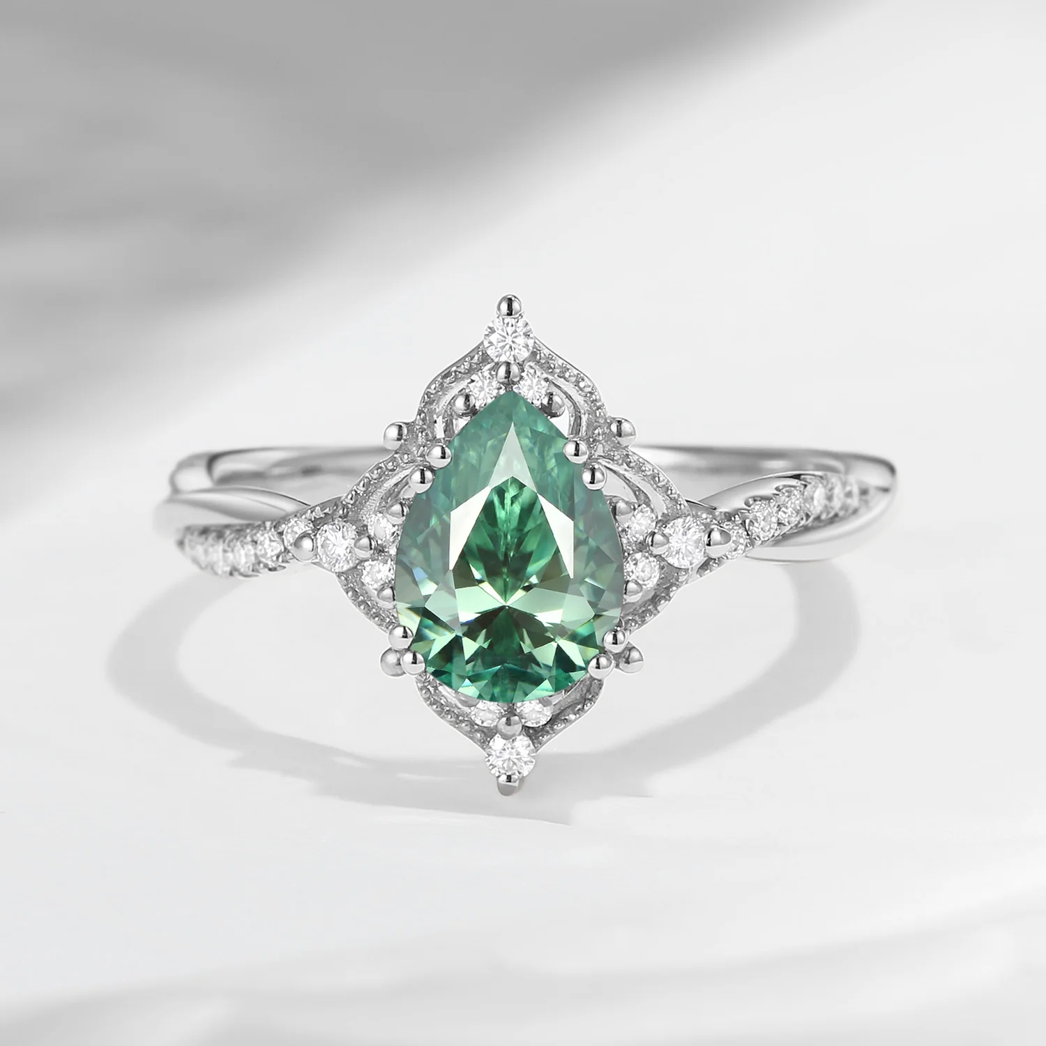 Vintage Style Infinity Teal Blue Green Moissanite Engagement Ring Nature Inspired Antique Gift Green Ring